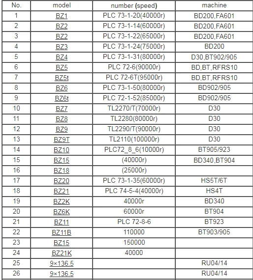 纺杯轴承:73-1-14、73-1-22、73-1-24、73-1-31、72-6、72-8、72-10、72-11、T010、T013、T011、T014、72-8-3、72-8-7、73-1-50、73-1-69, 73-1-67